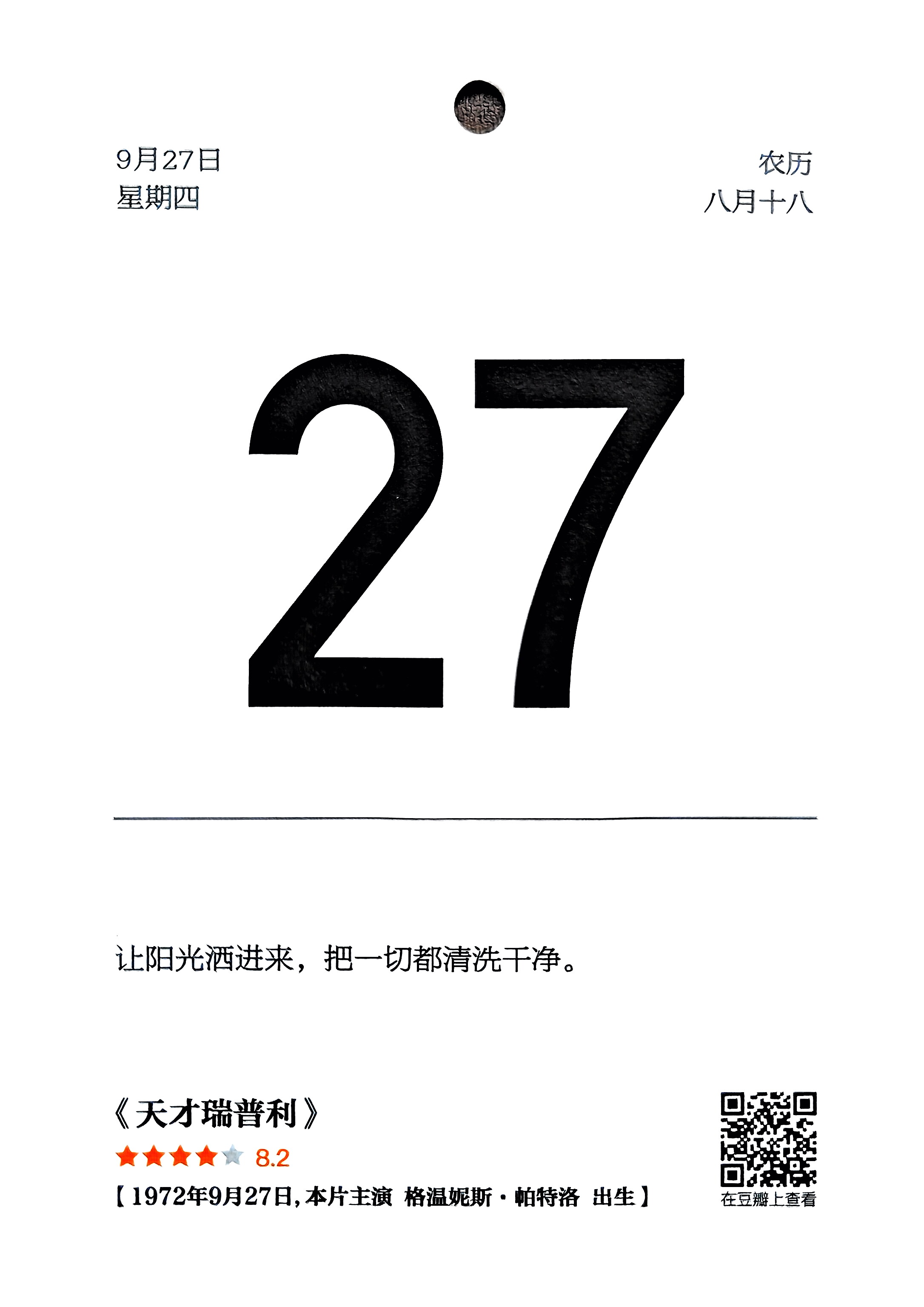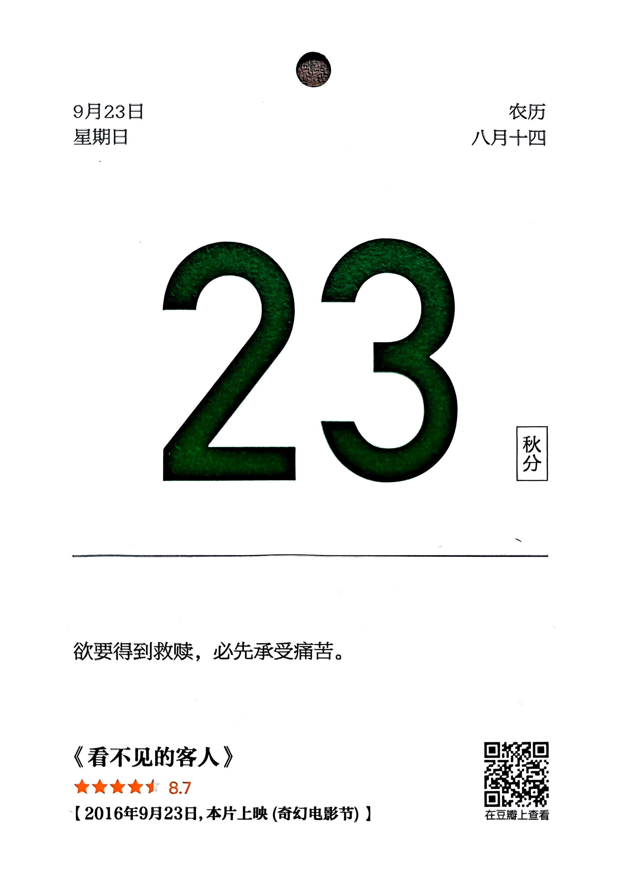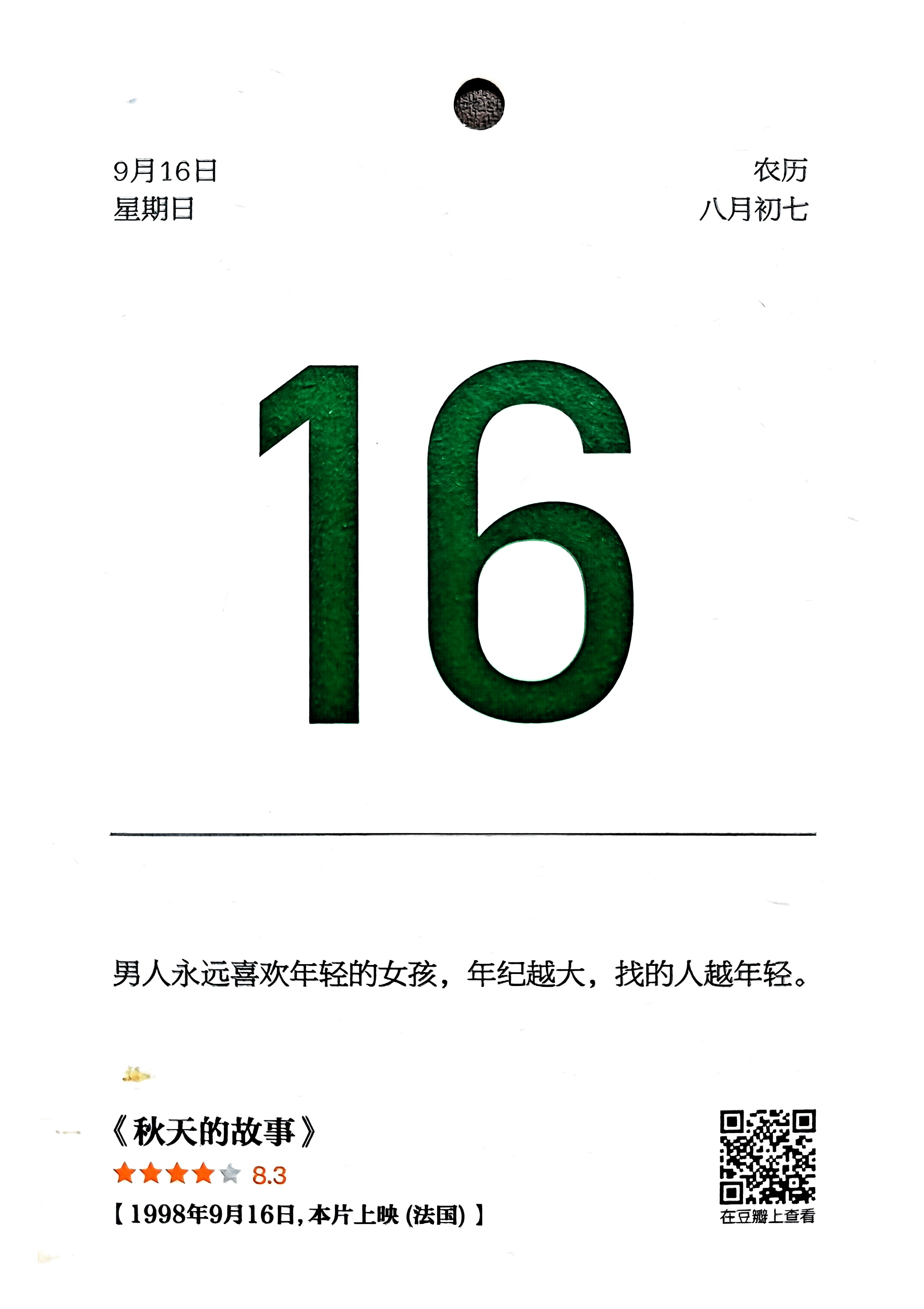 - 2018年09月《豆瓣电影日历》 日期