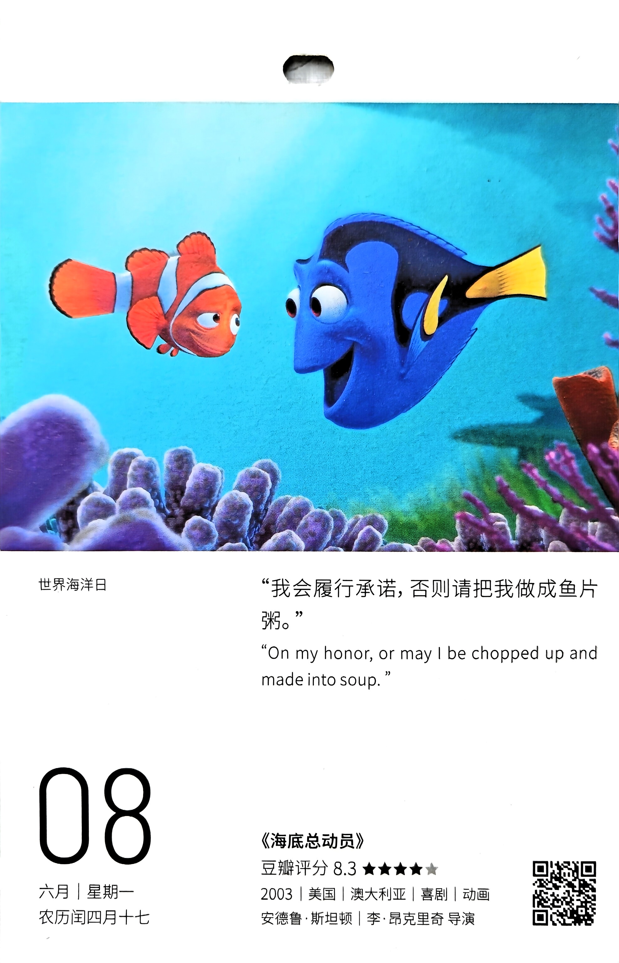 6月21日《海底总动员》推荐2次:(2026-06-21/2020-06-08)