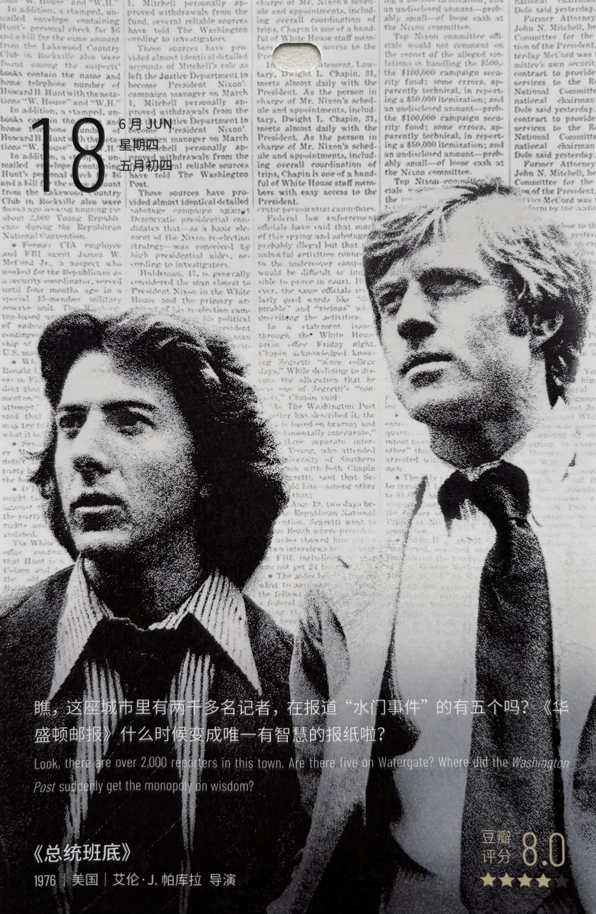 四名空贼潜入水门大度遭到逮捕,这原是一件毫不起眼的小刑案,却引起美国总统之关切。二名华盛顿邮报的记者,历经艰辛挫折,最后揭发震惊全球的尼克森总统水门案丑闻。