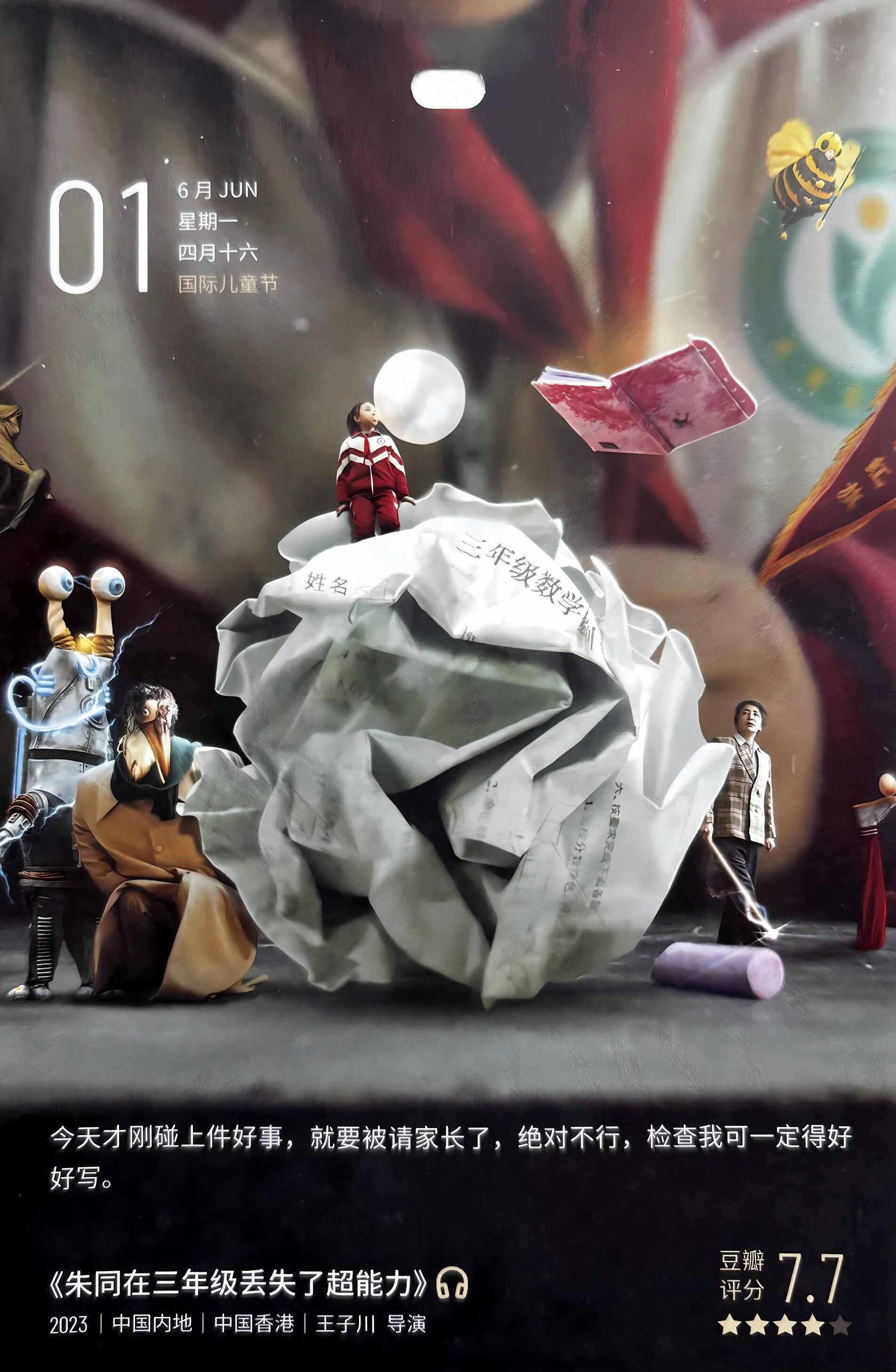 三年级小学生朱同,他成绩垫底、调皮捣蛋,每天他的小脑瓜里都会出现一万种幻想。然而有一天,他发现班主任牛老师居然在走廊上追打外星人、草坪中的小花会说话、同学变成了杂草人......无数令人匪夷所思的事件纷至沓来,离奇幻想与学校生活的苦恼交织。朱同