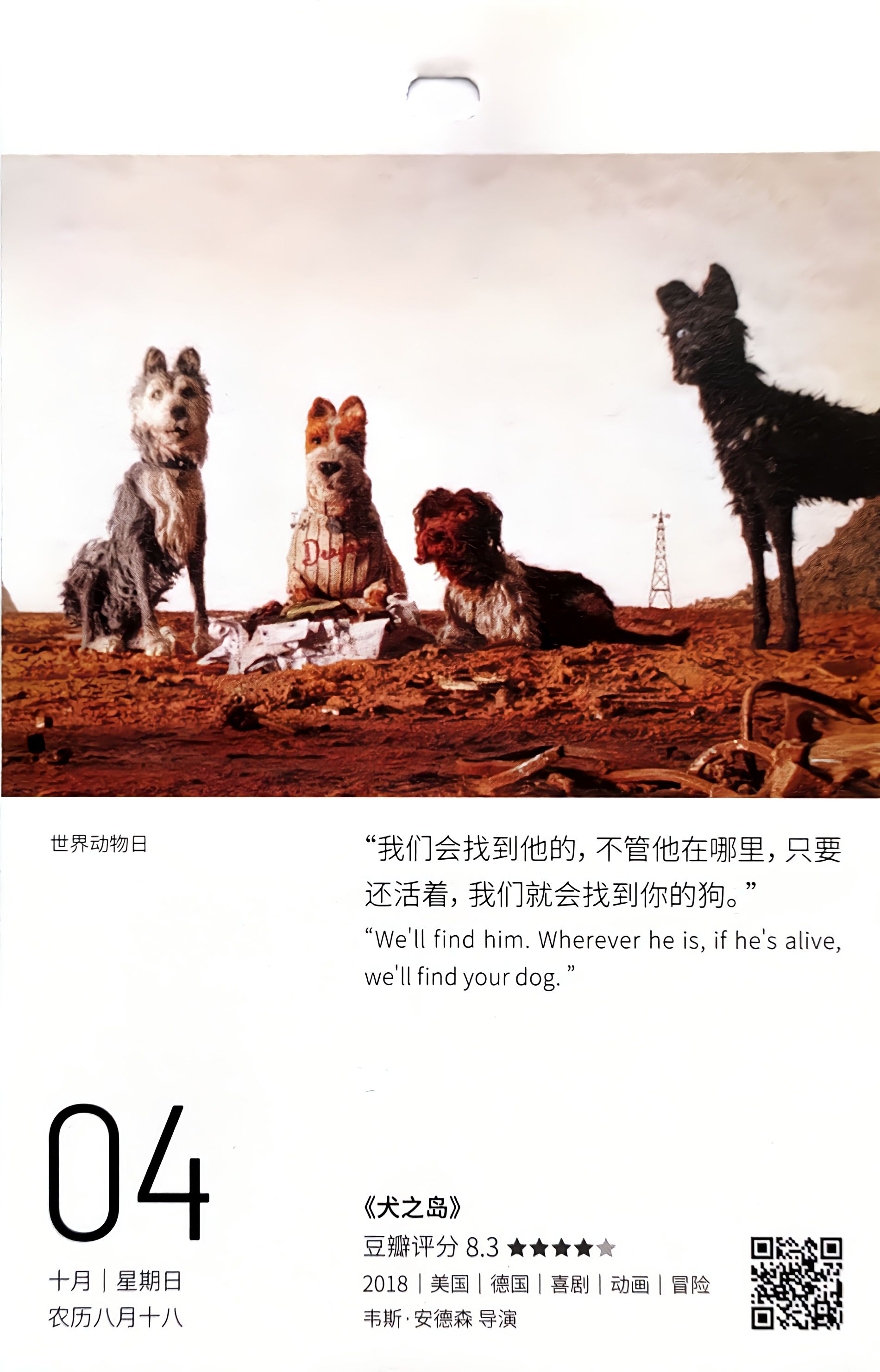 10月04日《犬之岛》推荐2次:(2026-10-04/2020-10-04)
