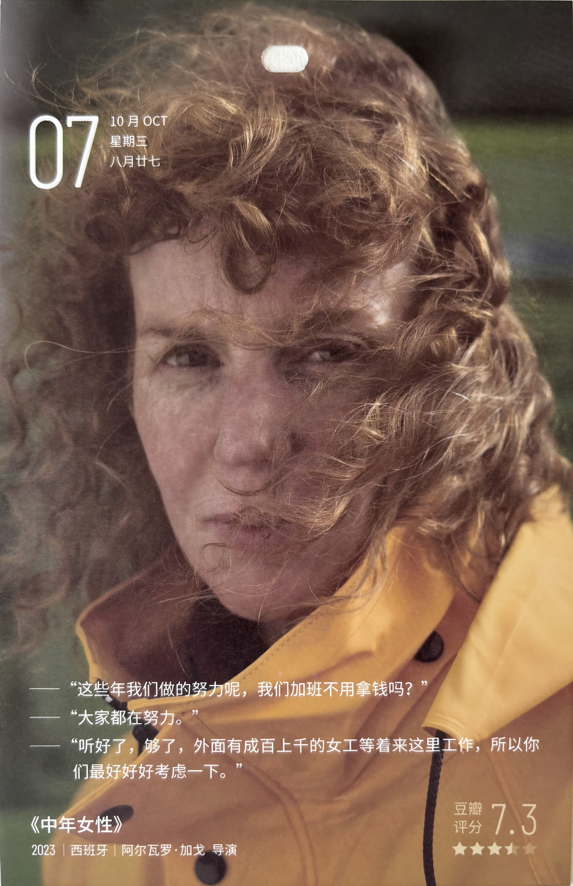 年过四十的拉蒙娜身兼数份工作以应对巨大的经济压力,琐碎而残忍的生活让她倍感焦虑,她该如何摆脱这种可怕的循环?导演阿尔瓦罗加戈使用大量手持跟拍镜头,如纪录片般真实展现了一位中年妇女所处的社会关系网络,现实主义风格的粗粝影像描绘出了一幅底层
