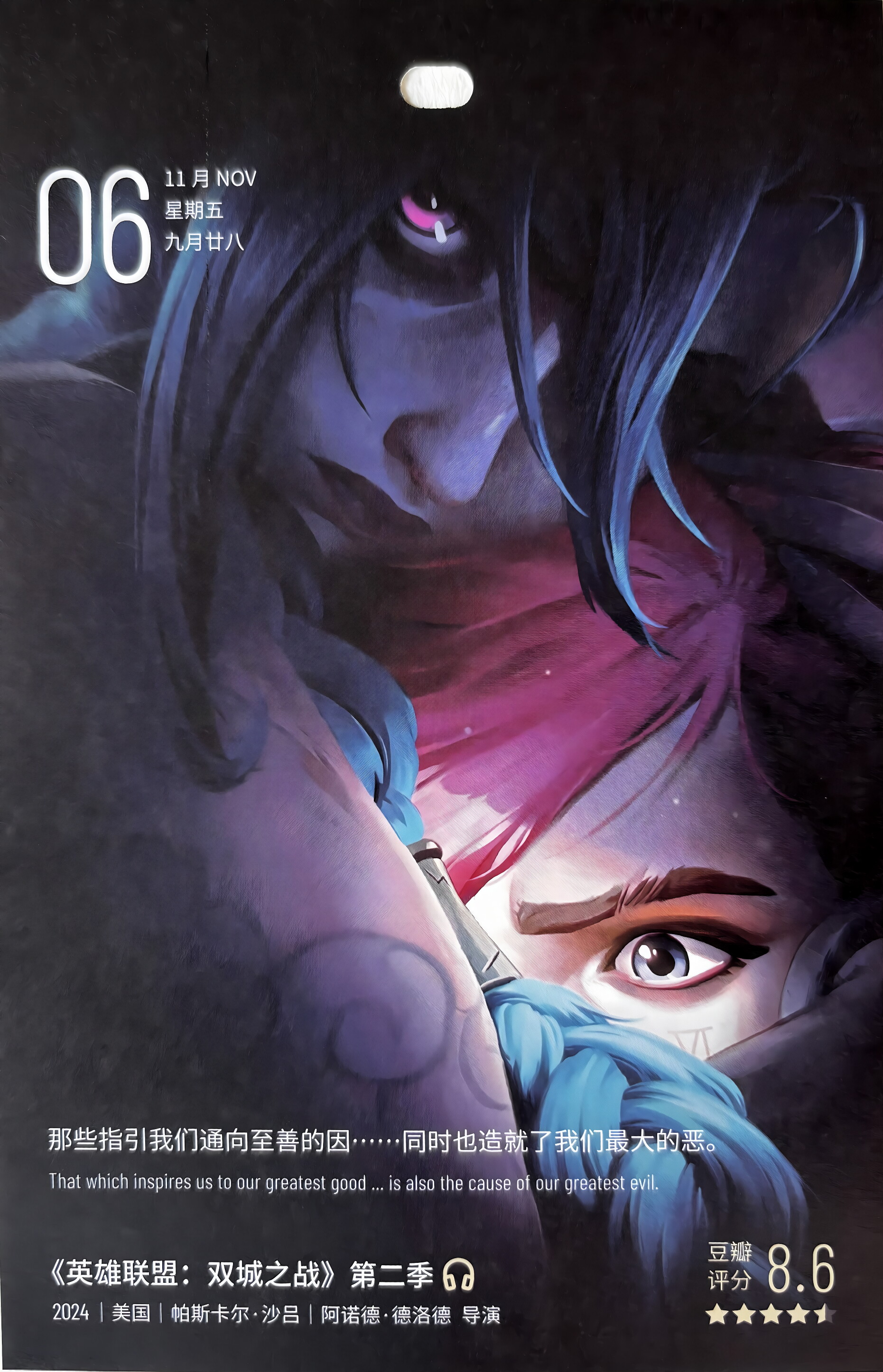 《英雄联盟:双城之战》作为拳头游戏推出的英雄联盟的首部动画剧集,第一季荣获九座安妮奖及包括最佳动画剧集在内的四项艾美奖。 《双城之战》的故事将在第二季迎来尾声。金克丝对议会的袭击,揭开了皮尔特沃夫和祖安矛盾急剧恶化的序幕。