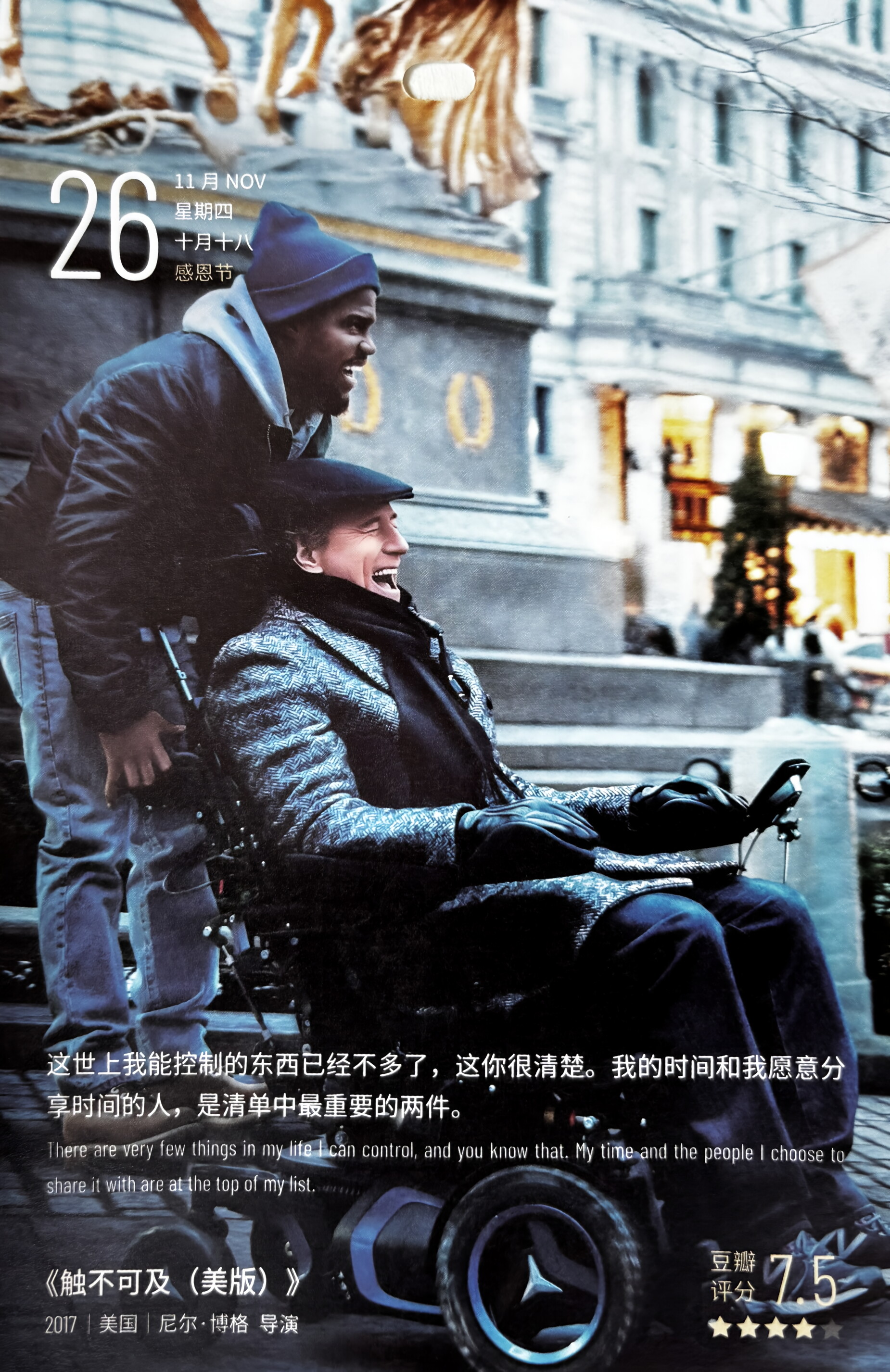 菲利普(布莱恩科兰斯顿 Bryan Cranston 饰)是一位腰缠万贯的富翁,在一场滑翔伞事故中,他伤及了颈椎,导致全身瘫痪。如今,他隐居在自己豪华的别墅中,凭借着雄厚的资金过着离群索居的日子。在好友的建议下,菲利普决定招聘一名贴身助理来照顾自己的生活起